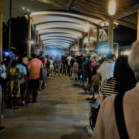 Paskui pavakarieniavome vėl viename iš hawker centrų ir judėjome dar toliau už miesto, į zoologijos sodą, kur turėjome bilietus į naktinį safarį nuo 19 val. Na o tada mes stovėjome eilėse vėl ir vėl. Žinoma, švenčių periodas, na bet tokių mes nematėm ir tokio neorganizuotumo taip pat. Pirkom bilietus internetu, bet virš valandos stovėjome eilėje, kad pasiimti fizinius bilietus. Įeiti mums buvo leista 21.15 ir kad tą padaryti, reikėjo vėl stovėti eilėje, o kad nuskenuoti bilietą, dar vienoje. Tada dar vienoje, kad patektum į traukinuką ir t.t. ir t.t. Tad įspūdis buvo gan nekoks nuo pat pradžių.